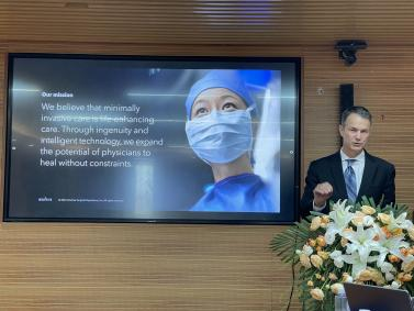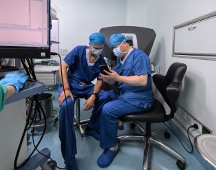 近日,全球最早研发和制造机器人手术平台,并保持国际领先的美国Intuitive高级副总裁Henry Charlton博士访问西安交通大学第二附属医院妇科微创中心,与妇科微创中心主任薛翔及团队就机器人手术的高质量发展、培训和将来进行了深入的讨论,并参观了一例机器人辅助下早期宫颈癌的手术。Henry副总裁与薛翔主任共话机器人手术高质量发展、医工结合和机器人手术的发展趋势。微创手术技术将加速病人康复,通过高科技的人工智能技术在微创手术中的应用使得手术医生更容易的发挥潜能、增进病人的高质量康复。副总裁对薛翔主任的精彩手术表示了高度欣赏和赞扬,并对在中国进一步加强医工合作做了建设性构想。