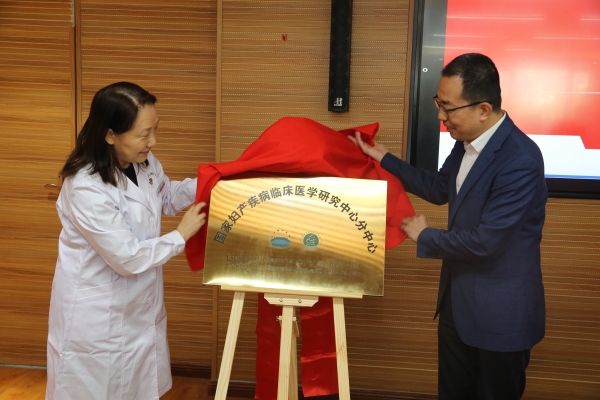北京协和医院郎景和院士和朱兰主任为国家妇产科疾病临床医学研究纵中心陕西省分中心授牌(7月7日摄)