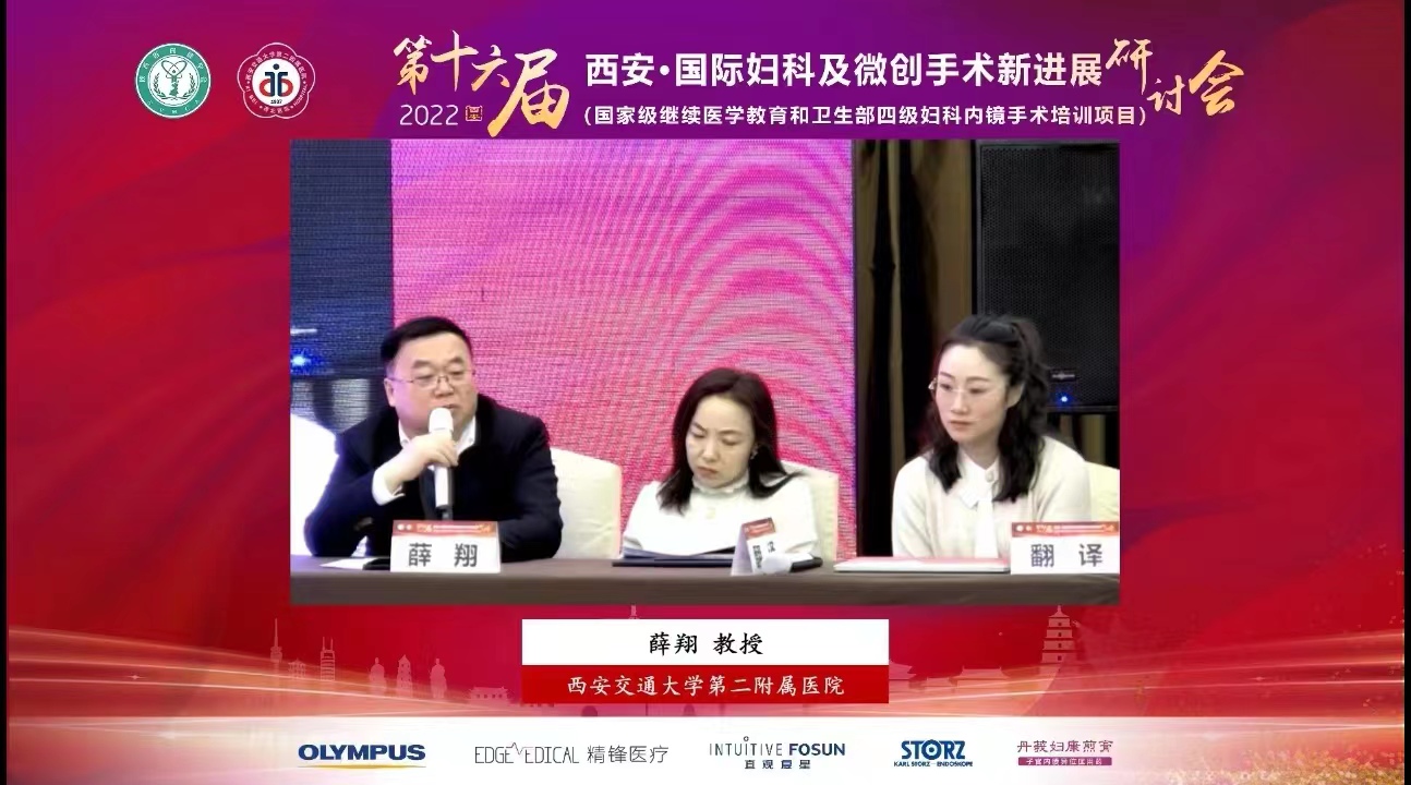 11月26日八时会议正式开始,西安交通大学第二附属医院妇产科主任薛翔教授主持开幕式。妇科腔镜前辈首都医科大学附属复兴医院夏恩兰教授、美国妇科腔镜学会前主席CY LIU教授以及北京协和医院朱兰教授分别为开幕式致辞。陕西省卫健委医政医管局刘娜局长在开幕式上对我院多年来在妇科腔镜医疗方面为省内外患者做出的贡献表示了肯定,并对我院多次举办这种高规格、高水平、高质量的大型国际妇科腔镜学术交流会表示赞赏和支持,尤其是在党的二十大落幕之际,我院再次召开该规模的国际会议,更是把保障人民群众健康的优先发展战略放在首位,以实际行动贯彻和落实了党的二十大精神。西安交通大学第二附属医院李宗芳院长更是表示医院为了学科的发展,会给予大力的支持,并对薛翔主任多年来为腔镜事业做出的贡献给予充分的肯定,同时预祝大会圆满成功。