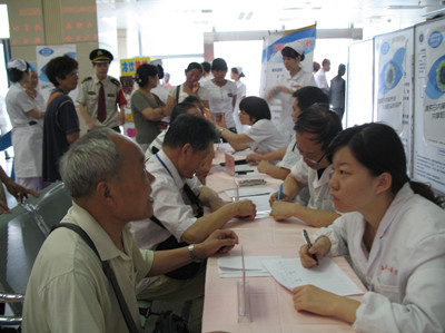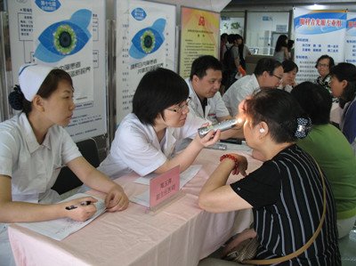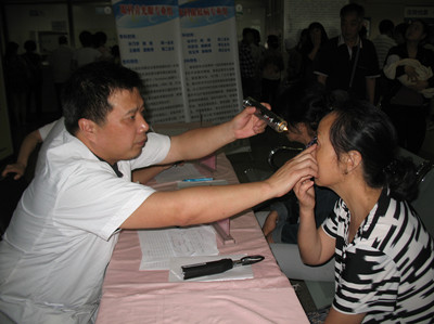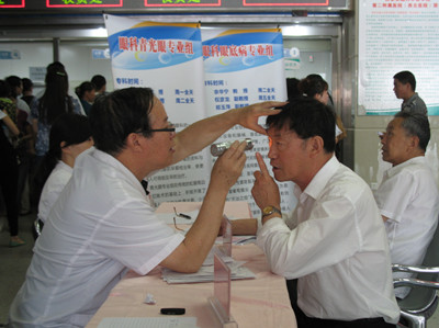 为进一步提高广大群众的眼保健水平,普及爱眼护眼知识,让更多的白内障患者能够共享和谐“新视界”,眼科于6月6日上午,在我院综合大楼一楼大厅举行了爱眼日宣传咨询义诊活动。本次义诊活动由眼科支部书记王建明教授带队,任百超教授、郑玉萍副教授、何娜副护士长等共7人参加。活动现场,前来咨询的患者络绎不绝,眼科医护人员耐心地为每一位患者进行了热情咨询、答疑解惑。对于一些外眼疾病如结膜炎等患者,专家们现场给予了诊治;对于需要进一步检查的咨询者,予以免挂号费,并及时安排眼科专科检查,在义诊结束前就能让患者拿到检查结果,方便了患者,得到了病人的赞许。此次义诊活动共接诊咨询检查患者100余人。