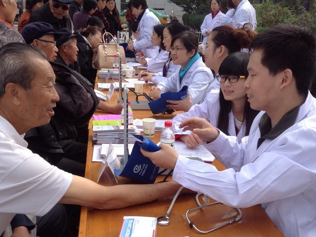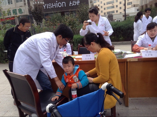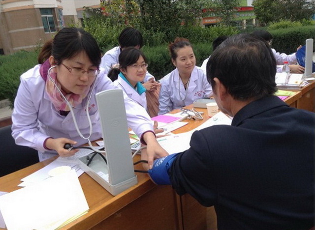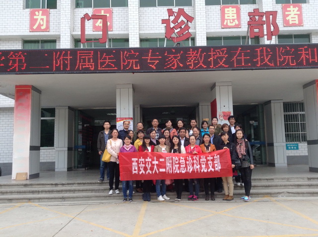 首先裴红红教授为黄陵县医护人员进行了《脓毒症诊治新进展》讲座,王妮副护士长为乡镇卫生院进行了《急危重患者抢救与配合》的讲座,并分享了相关经验及规范操作,与此同时,急诊科其他医护人员在黄陵县医院执行院长乔万海教授的带领下分为两队,一队赶赴黄陵县医院义诊,一队则在黄陵县中心广场上进行全县公共义诊活动。我科医护人员一下车即穿上随身携带的西安交大第二附属医院的白大衣,即刻投入到义诊活动中去,耐心负责地接诊每一位就诊咨询者。测血压、查体、解答问题、解释病情、建议治疗等等,义诊医护人员认真仔细地诊治每一位患者,耐心细致地解答就诊咨询者的每一个问题,用自己的专业知识解除黄陵县人民群众病痛疾苦,使当地群众能够在家门口享受三级甲等医院专家教授的诊疗服务,为基层民众赢得了实惠,是党的群众路线教育实践活动的再次体现。