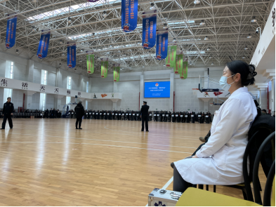 2025 年 1 月 16 日,为提升校园应急处置能力,新城区“警校共治”在89中体育馆开展校园最小应急单元会操演练。西安交通大学第二附属医院老年心血管内科积极响应院方号召,选派医生护士各一名组成专业医疗保障队伍,为此次演练的顺利进行提供了全方位的医疗支持与安全保障。
