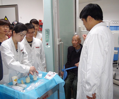 该学习班的成功举办,我们虽有付出,但收获更大。难得窦祖林教百忙之中能够抽出一周时间到我科传经送宝,不仅在吞咽障碍的治疗方面使我们的技术更进一步提高,而且在临床康复治疗的其他方方面面也一一得到窦教授的指导。窦教授从最基本的偏瘫、截瘫病人的翻身训练、轮椅脚踏板高低的设置等,到复杂疑难病人的综合康复治疗技术、手法均一一进行了示范指导,还同时就我们学科的进一步发展提出了建设性的建议,使我们不仅更新了知识,开拓了视野,也为今后学科的发展提供了更大的动力和新的方向。该学习班的成功举办也同时显示了我科在此领域雄厚的整体实力,扩大了我们交大二附院康复医学科的影响力。