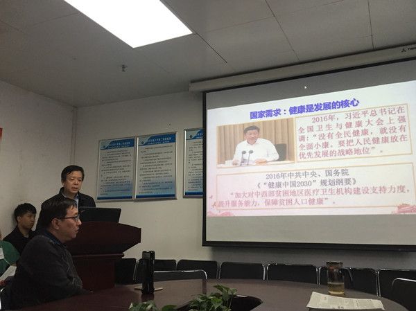 张蓬勃副院长说,今天的党课主要内容是健康方面的内容,随后分析了中国西部人群环境相关重大疾病现状及医疗资源分布情况;用详细的资料展示了2017年国家"双一流”建设医学学科概况,及教育部第四轮学科评估医学学科排名现状及差距分析原因;详细给党员讲解了近几年来全国医院排名情况,我院连续几年所处的位置。本次党课的目的在于唤起每个党员干部的忧患意识,危机意识,清楚明了地知道我们医院在全国所处的位置,唤起全院广大党员职工的干劲,发挥基层党组织的战斗堡垒作用,不忘初心,坚定信念,努力学习和工作,在工作中不断创新,从每个党员做起,发挥党员的先锋模范作用,在新的形势下多出成绩,为“双一流”建设和医院的发展贡献最大的力量。