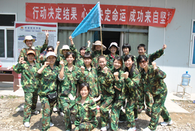 走进拓展训练基地,大家穿上迷彩服,随机分为三组。队员们竭尽全力发挥个人智慧,在规定的时间内完成了任务,想出了具有代表意义的队名、队歌及设计好了队旗。一队取名火箭队,口好是:超越自我,勇争第一,队歌是:相信自己,哦哦哦……二队取名雄鹰队,口号是:雄鹰雄鹰,展翅高飞,队歌是:团结就是力量……三队取名为无敌队,口号是:春风吹,战鼓擂,无敌队员怕过谁,队歌是:我们无敌,山势高昂的头……各队队长由刚分来的几位年轻人毛遂自荐担任,很敬业,很负责,很称职,蛮像一回事。三个队分别报了自己队的队名,高喊口号,齐唱队歌,最后分别摆出火箭、雄鹰和象征胜利的V字型队伍,一刹那,每个人的心灵被震撼,感觉到自己就是一名战士,必须为全队的胜利、荣誉而战!由于时间的关系,参加的项目不是很多,但是每一个项目以及培训师的教诲,都给予大家很多的感受。参加的项目依次是“流程管理”,“高空断桥”,“云中漫步”“高空轮胎桥”“漫漫人生路”。