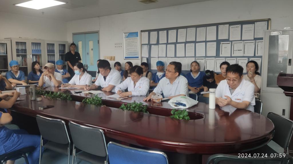 在晨交班结束后,工会、国装办与麻醉科负责人进行了深入交流。工会办公室主任张海英提出工会将积极响应并解决职工在生活出现的任何难题。针对麻醉科提出的麻醉柜老旧问题,国装办副主任夏林林答复国装办将迅速响应,加快采购流程,确保医疗设备的及时更新。这一举措体现了医院党政后勤科室对一线需求的重视和快速响应能力,得到了麻醉科的高度认可。