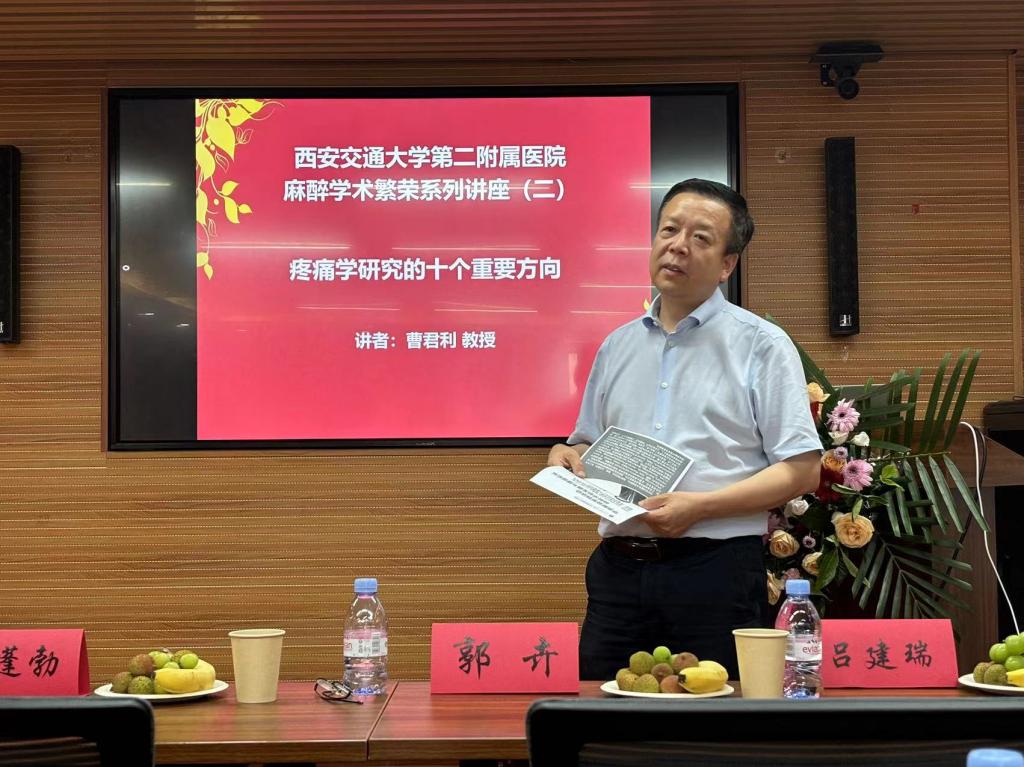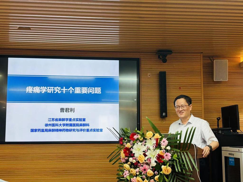 热烈的掌声过后,曹教授展开了精彩的学术演讲,详细探讨了疼痛学研究的最新进展和未来方向。他从新型镇痛药物的研发、慢性疼痛的精准医疗等方面入手,系统阐述了各研究领域的现状和挑战。特别是他对痛觉信息处理的脑机制、慢性疼痛与精神疾病的共病机制等复杂话题进行了深入讨论,提供了多种新的研究思路和方法。