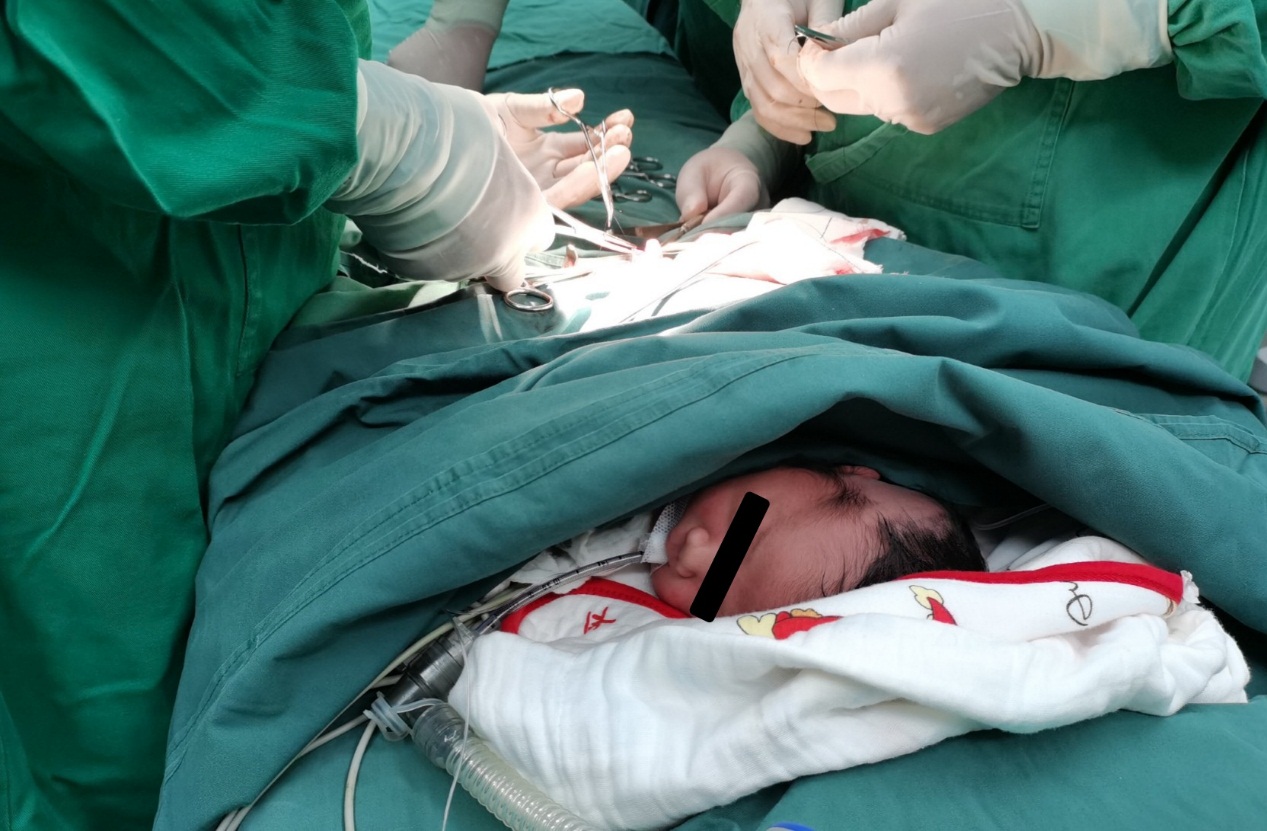 患儿系第3胎孕38+3周剖宫产出生,生后2小时发现该新生儿睾丸扭转坏死,拟急诊行阴囊探查和左侧睾丸切除术。但此前洋县人民医院尚未开展过新生儿麻醉,缺少相关麻醉经验和部分新生儿麻醉设备耗材。我院对口支援的麻醉医师蒋文军对患儿进行详细的术前评估,根据患儿情况和现有麻醉设备耗材,制定了气管插管全身麻醉方案和应急预案,麻醉和手术过程顺利,术中患儿生命体征平稳,术毕拔出气管导管后安全送回病房。