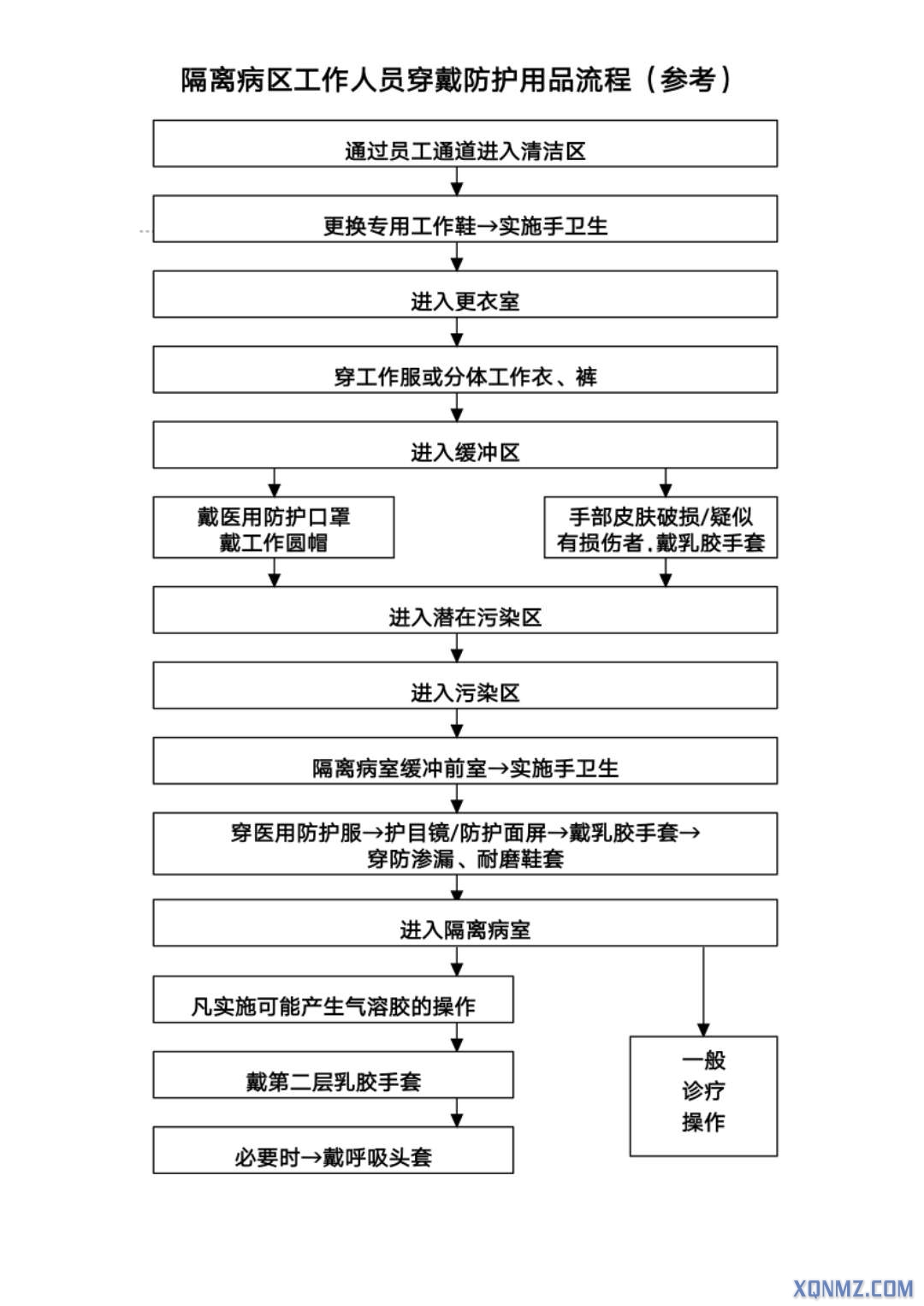 5.穿戴顺序:可参考《隔离病区工作人员穿戴防护用品流程》图1;