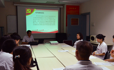 6月21日上午,超声研究室党支部在科室示教室召开“党风廉政建设”专题组织生活会,目的是为纪念中国共产党成立92周年,进一步加强医用超声研究室党支部及党员队伍建设,不断提高广大党员对党的进一步认识,提高拒腐防变的能力,进一步凝聚党风廉政建设的正能量。专题组织生活会由支部书记李小鹏主持,超声研究室周琦主任和全体党员参加了学习。