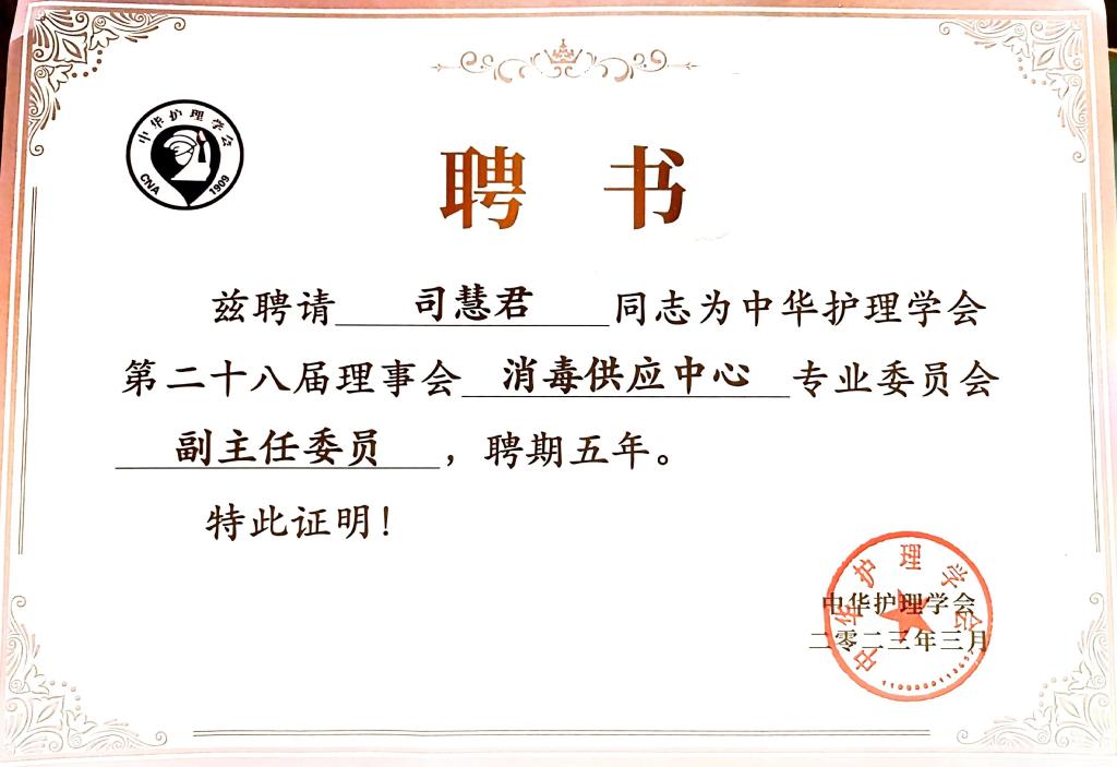 司慧君同志是陕西省消毒供应专业的领航者,个人曾获“陕西省医院感染管理先进个人”、“陕西省三八红旗手”、“西安市三八红旗手”、“西安交通大学工会系统积极分子”及医院多项荣誉称号。在司慧君同志的带领下,我院消毒供应科近年获得“团中央示范团支部”、“陕西省青年文明号”、“陕西省三八红旗集体”、“陕西省优质护理先进科室”、“西安市三八红旗集体”、“新城区尚德好青年最美集体”等荣誉。司慧君同志带领的陕西省消毒供应专业委员会团队获得全国中华护理学会首届专科器械再处理指南最佳实践大赛“一等奖”、西部护理联盟专科知识竞赛“二等奖”、连续5年荣获省护理学会“优秀专委会”等荣誉。