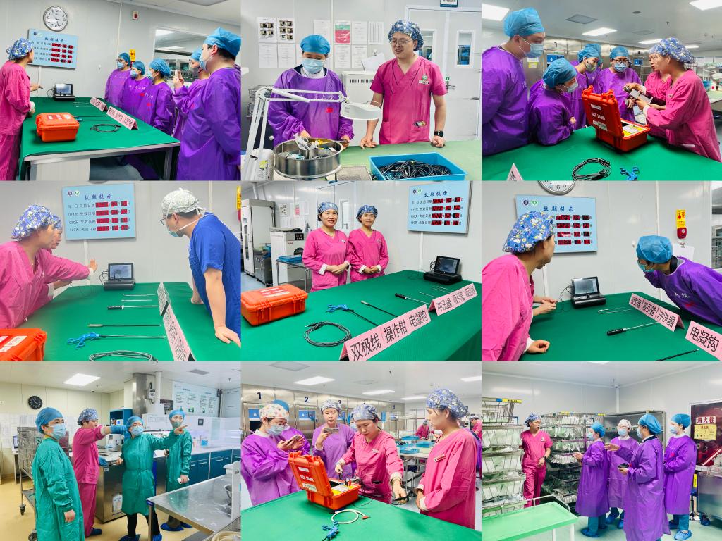 此次活动邀请本院临床医务人员及其他医院同行100余人参加。活动以简单又不失仪式感的签到仪式拉开序幕。消毒供应中心司慧君主任对消毒供应中心的概况、优质服务管理进行了介绍,并带领大家实地参观消毒供应中心各区域,了解复用器械由污到洁的“蜕变”过程,腔镜组成员张少亚、手术组成员杨青对绝缘性检测仪和内窥镜检视系统的操作进行了现场演示,加深临床人员对复用器械十大处理流程的了解,并对消毒供应中心的规范化、科学化、精细化管理有了重新的认识。