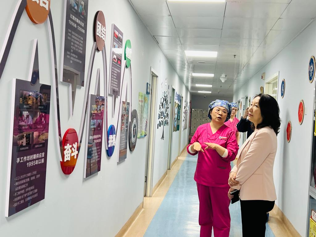 本次活动特别邀请到医院党委刘昌书记,4月14日下午,刘书记一行莅临现场参观指导。崔护士长向刘书记介绍了消毒供应科筚路蓝缕的发展历程和制作口罩同心抗疫的光荣过往,得到了刘书记的肯定和称赞。