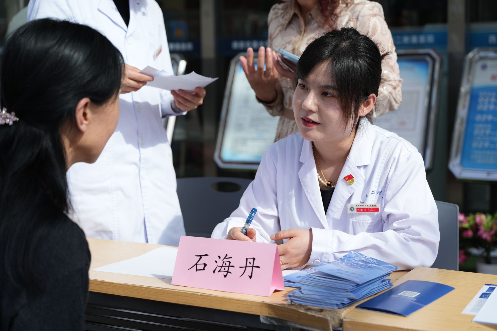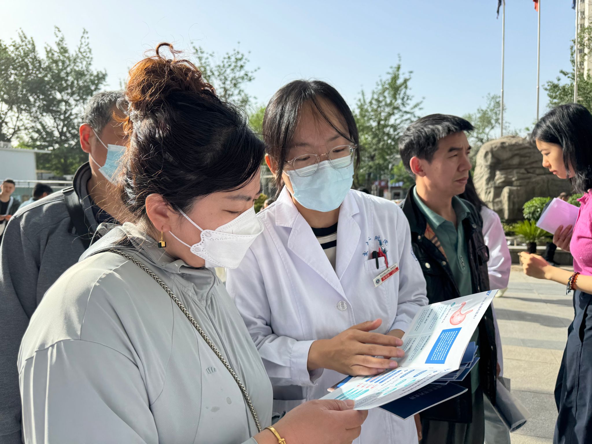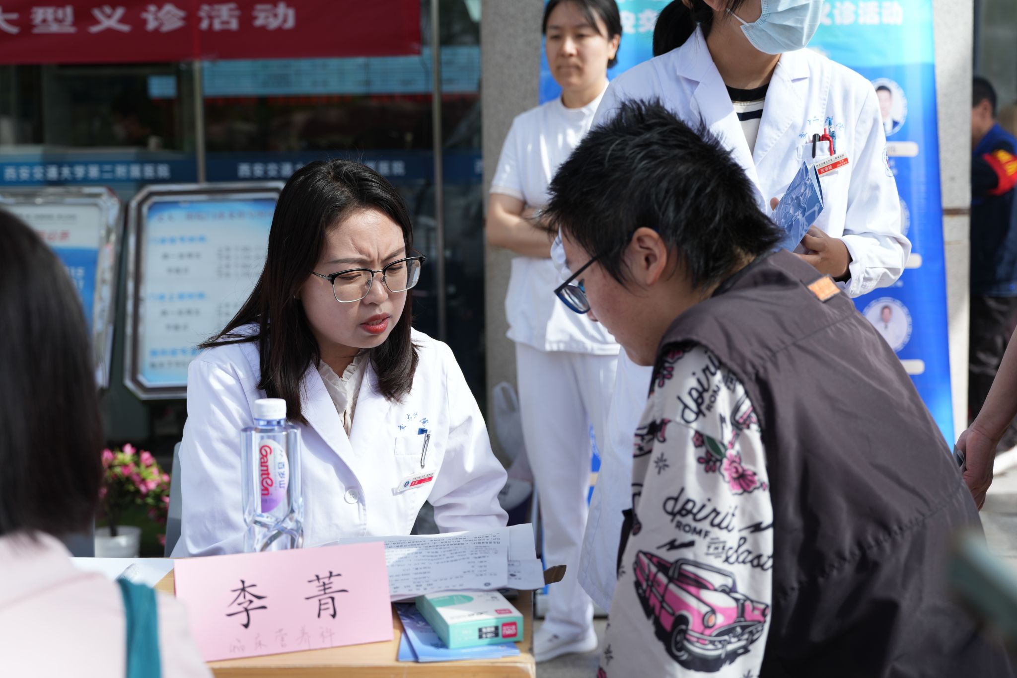4月17日上午,临床营养科石海丹医生、李菁医生参与肿瘤内科组织的多学科联合义诊活动。活动现场,医生通过一对一咨询,开具个性化饮食处方,针对性解答患者关于“治疗期营养补充”“放化疗后饮食调整”等难题,并纠正“盲目忌口”“过度依赖保健品”等常见误区。活动同步发放肿瘤相关营养宣教手册,帮助患者及家属掌握科学饮食方法。