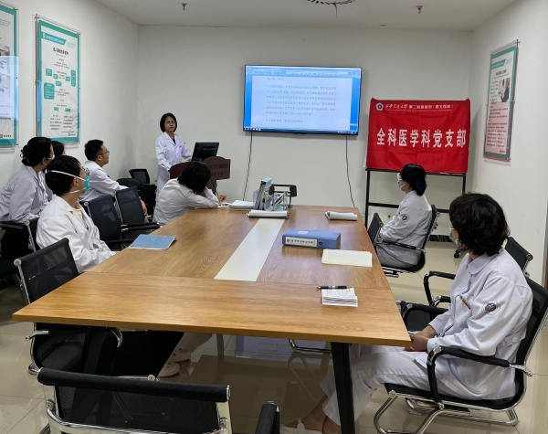 2023年6月13日,全科医学党支部在全科医学科示教室组织召开了“习近平新时代中国特色社会主义”主题党日活动,以院党委“西安交通大学第二附属医院2023年党建强科行动计划指标体系”“三会一课有创新、主题教育见实效”“理论活动学习方案”等文件为主要内容召开党支部及扩大会议。会议由支部组织委员张亚茹同志主持,科室党员、科委会成员、团支部委员、科室骨干共同参会。