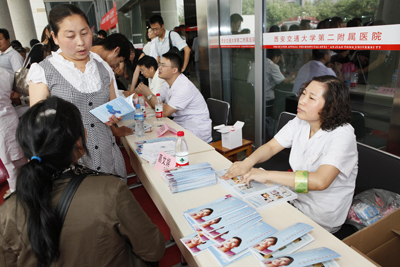 5月18日是我院皮肤科激光美容中心成立十四周年,5月25日是第五届全国护肤日。为了在全社会范围内普及提高护肤知识,宣传健康科学的护肤理念,正确宣传引导消费者从根本上提升我国公民的皮肤健康水平,给大众建立一个科学、专业、有效的途径来解决护肤问题,从而能够使皮肤健康问题得到最好的指导和保障。皮肤科于18日在门诊大楼一楼大厅举行免费挂号义诊和皮肤健康宣传活动。