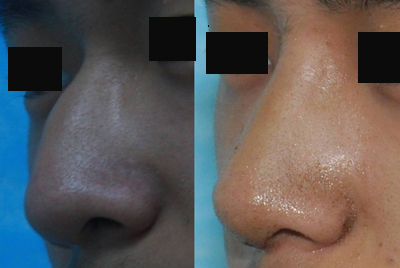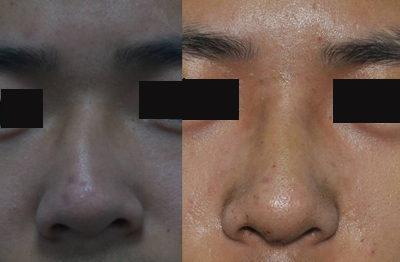 术前请整形美容烧伤科单磊副教授会诊,于2013年7月17日,单磊副教授与许珉教授携手合作,在全麻下为患者施行歪鼻整形术及鼻中隔偏曲矫正术。在鼻内镜下,于鼻小柱、双侧鼻阈前行蝶形切口,切除鼻中隔软骨;于双侧鼻阈后鼻外侧壁切开,截断、磨平鼻骨、上颌骨鼻嵴、额骨鼻嵴,进行外形重建;用取下的鼻中隔软骨垫高鼻尖。