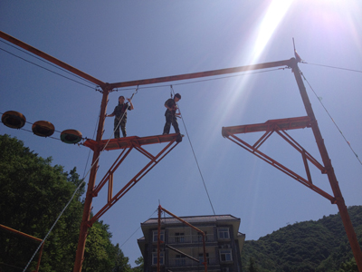高空断桥要求队员攀上8米的高空,跨过两个间距1.2米的断桥,然后再转身跨回去,顺原路返回。最终所有队员都完成了这个项目,后来大家在互相交流时,谈到在高空跨越前,都有不同程度的恐惧和担心,个别队员站在高空时出现了退缩和想放弃的思想,护士刘倩分享当时自己的心情:“面对8米高空的断桥,我当时害怕极了,我想一定会从高空掉下去,就开始往后退,感谢队友的反复鼓励和加油,使我战胜了内心的恐惧,迈出了重要的一大步。”高空断桥对每一个人都是一次考验,和生活、工作联系起来,可能是一个疑难的病例、可能是一次抢救病人、可能是严重的身体的病痛、可能是精神心灵上遭受的一次重创,勇敢的跨过去,我们就战胜了内心的怯懦和退却思想,突破了自我,战胜了困难,生命也会因此而焕发出勃勃生机。同时团队中队员之间的互相鼓励对个体的成长也很有帮助。