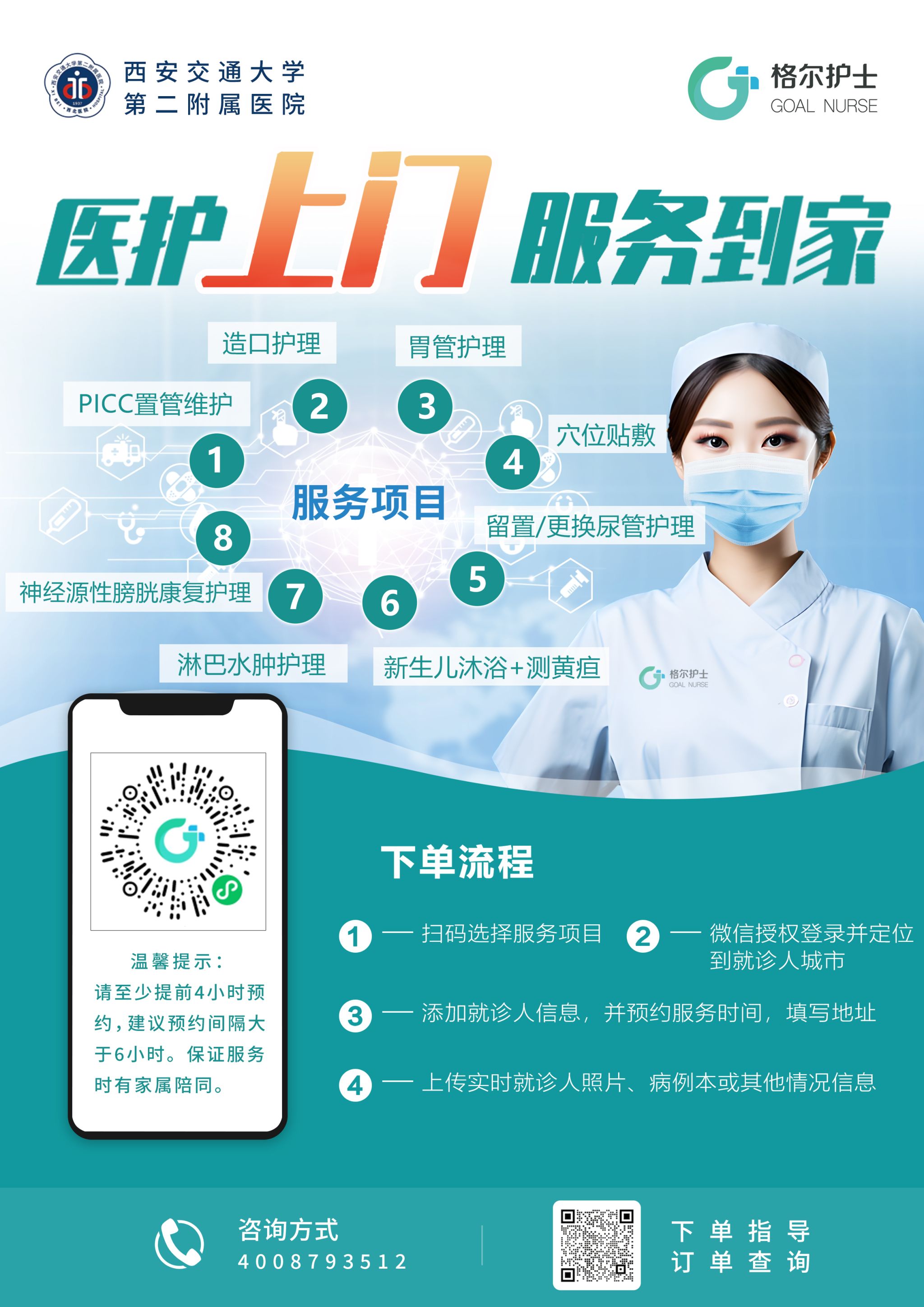 为深入贯彻落实国家卫健委《进一步改善护理服务行动计划(2023-2025)》的规划和要求,进一步改善护理服务,持续提升患者就医体验,切实推动护理工作更加贴近患者、贴近临床和社会,我院护理部高质量创新“互联网+护理服务”模式,开展护理服务项目上门服务,打通专业护理到家“最后一公里”。
