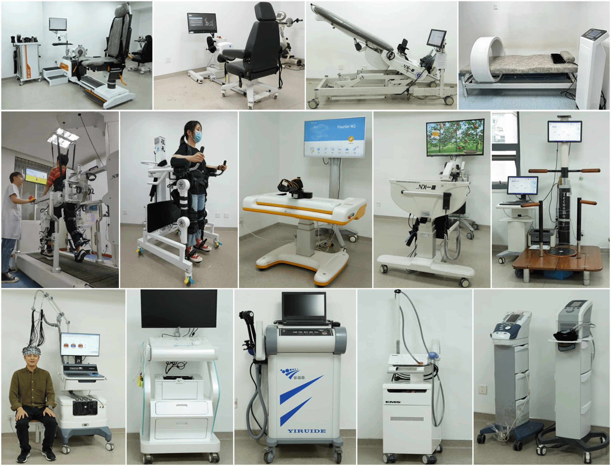智能康复设备,引领未来。科室配备多种智能康复设备,例如上、下肢智能机器人、下肢外骨骼康复机器人、智能手功能康复设备等,为患者提供个性化的康复训练计划,模拟实际运动以恢复肢体功能。重复经颅磁刺激仪和经颅直流电刺激仪通过非侵入性脑刺激技术,促进神经功能恢复。