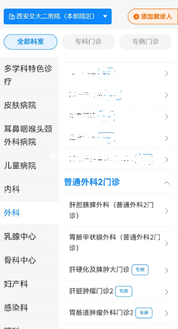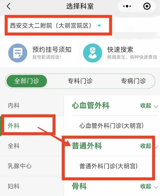在大明宫院区就诊的患者选择普通外科门诊大明宫(外科里面选取):