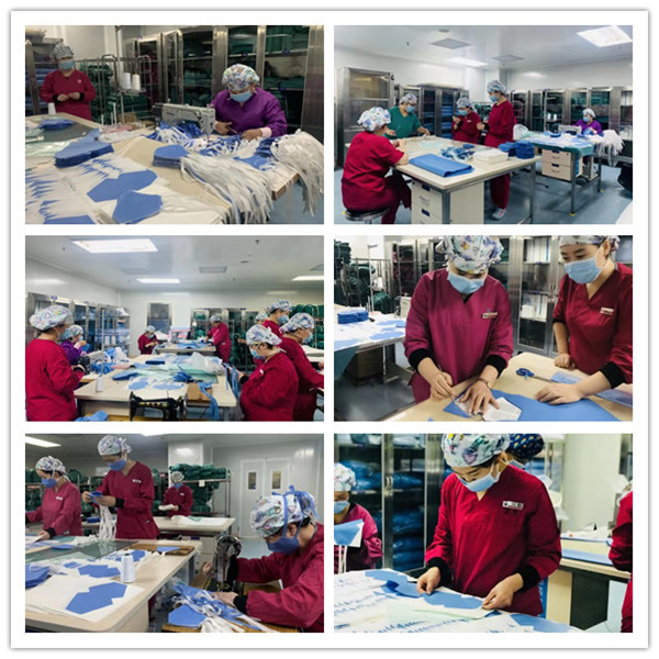 2月5日在西安市交大二附院消毒供应科,23名医护人员穿戴无菌衣帽,拿着手术刀,踩着缝纫机,利用医用包装无纺布自己动手制作口罩,以缓解医院口罩库存紧缺问题。在洁净的库房里,他们分工明确,从裁剪、缝纫到修边、打包,尝试制作第二天便开始进入流水化作业。口罩从第一版明线缝制到第二版采用暗线,再到第三版的鼻夹应用,日臻完美。