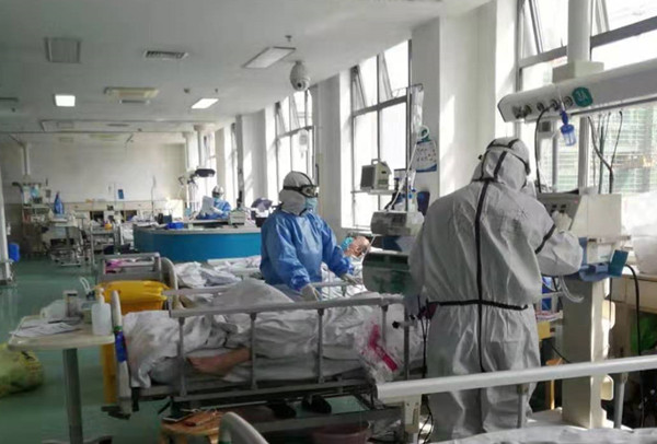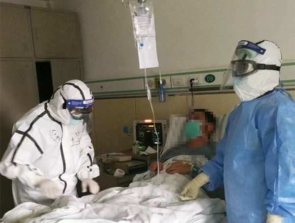 忙碌继续着,重症监护病房的主任突然来找我,看到他,我真的很心酸,穿一件无纺布的防护服,很皱,估计时间没有换过了,护目镜的松紧带坏掉了,自己又打了好几个结勉强固定着,身型瘦弱疲惫。他用武汉话告诉我,今天要收8个重病人,把轻点的患者再转到普通病房,我感觉压力山大。很快,转来一个病人,已经意识不清了,紧急抢救后带上呼吸机后,患者指脉氧才缓慢回升。这个患者刚处理完,又来了一个门诊收入的患者,指脉氧测不出,一番紧急救治后,患者维持住了生命体征。就在这时,原住的监护患者又出了状况,血压测不出,又是一波紧急抢救,患者逐渐恢复了意识。