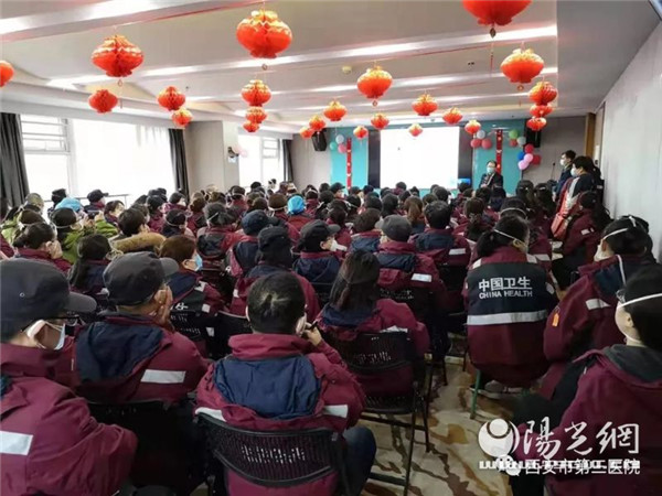 下午,易队长为大家加油打气:“我们是团结的集体,是亲密的战友,使命把我们召集在一起,前方,是我们的战友,后方,是我们的支援,陕西援鄂医疗队的每一人,没有院际之分,希望大家团结一心,互帮互助,共同抗战!”