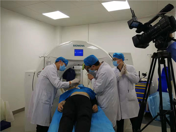 在下午的现场穿刺演示环节中,张德信副教授和张永红主治医师通过网络连接,边操作、边向在示教室的学员介绍操作技巧,注意事项等。学员们在示教室里不但可以清楚看到现场操作的画面,还可以看到CT扫描后穿刺针进针的深度及角度,全方位了解穿刺的过程。穿刺的两例患者分别采用不同的穿刺方法,穿刺过程顺利,无并发症发生。现场演示结束后,张德信副教授、张永红主治医师耐心解答学员们的问题,加深了学员们对“CT引导下肺穿刺技术”的认识。本次培训内容充实,展示详细具体,得到了学员广泛的赞誉。