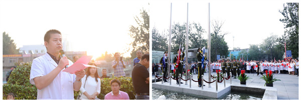 上午7时30分,升旗仪式正式开始。伴随着《歌唱祖国》嘹亮歌声的响起,由9名青春飞扬、朝气蓬勃的青年职工组成的护旗队迈着铿锵有力的步伐护送国旗、校旗、院旗进场,国歌声奏,升旗手振臂将国旗展开,五星红旗顺着朝阳的方向徐徐升起,在场全体同志、患者及家属肃穆而立致以崇敬的注目礼。
