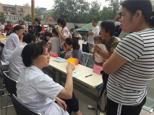 义诊活动由三个科室十二个专业的十二位医生教授在西安交通大学第二医院门诊大楼前一字排开,形成了义诊“长龙”阵。儿童神经康复专科王雪莹主治医师、儿童血液肿瘤专科徐尔迪副教授、儿童内分泌遗传代谢专科尹春燕博士、儿童呼吸哮喘专科李静副教授、儿童保健专科刘海燕主治医师、新生儿专科高琼主治医师、儿童泌尿外科吴宣林副教授、儿童胸腹外科李鹏教授、儿童普外科郑百俊主治医师、儿童肿瘤外科王怀杰主治医师、新生儿外科潘伟康副教授和儿童心理行为王亚萍教授为孩子了提供了专业的全面的诊疗,为儿童的健康保驾护航。
