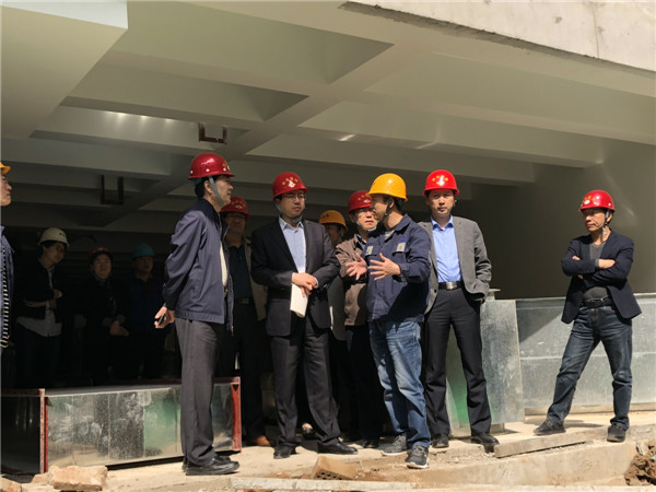 院领导协同专家及相关科室负责人、施工监理单位相关人员首先前往施工现场,查勘施工条件、了解现场情况。随后针对现场勘察情况,结合与会各方对该工程现状汇报及描述,同时针对存在的施工难度大、工序复杂、防水处理及成本造价等相关问题进行了讨论。党处长对现场施工环境及项目自身特殊性等问题给与了客观评价和全面分析,并给出了可行性参考建议。