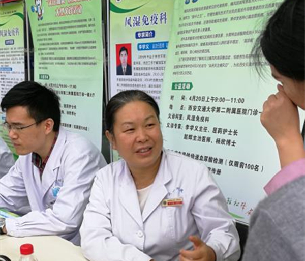 为了更好的帮助群众了解和关注痛风,根据男性高尿酸血症的诊断标准420μmol/L,全国专家把每年的4月20日定为“全民关注痛风日”,为此风湿免疫科、营养科、陕西省护理学会老年专委会内分泌学组于2018年4月20日上午9:00至11:00,以“关注痛风,远离第四高”为主题,开展了“4.20全民关注痛风日”义诊活动。