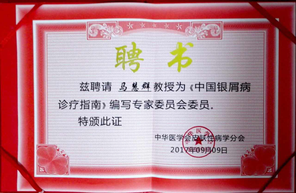 2017年9月9日-10日,第一版《中国银屑病诊疗指南》编写专家委员会在上海召开。我院马慧群研究员应邀参会并当选第一版《中国银屑病诊疗指南》编委。本次《指南》编写由中华医学会皮肤性病学分会发起,中华中医药学会皮肤病分会和中国中西医结合学会皮肤性病分会协同参编,编写专家委员会汇集了全国20余名知名银屑病专家及对银屑病治疗有突出贡献的学者。《指南》的制定,将对规范和优化我国银屑病的治疗行为和提高治疗效果起到重要作用。