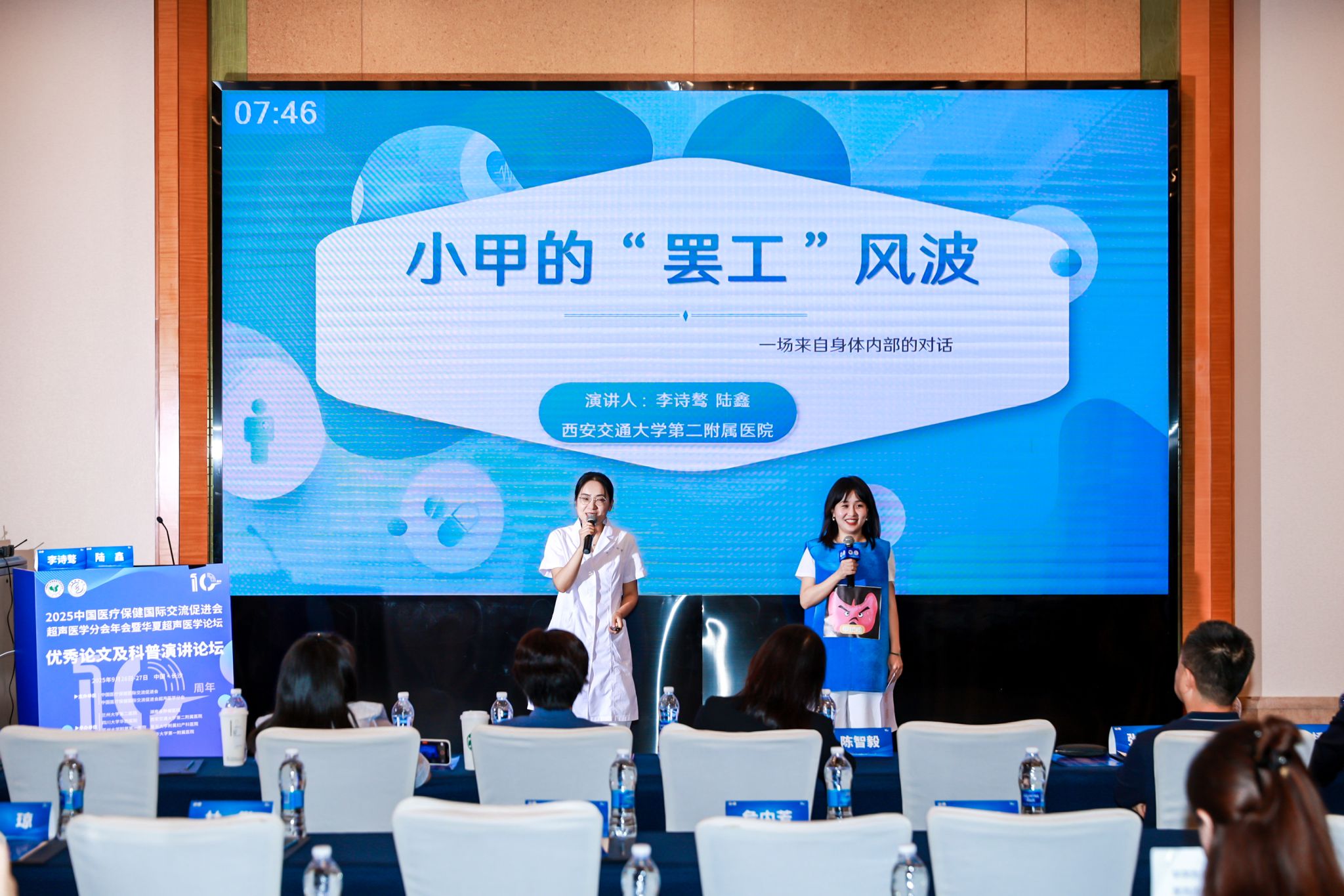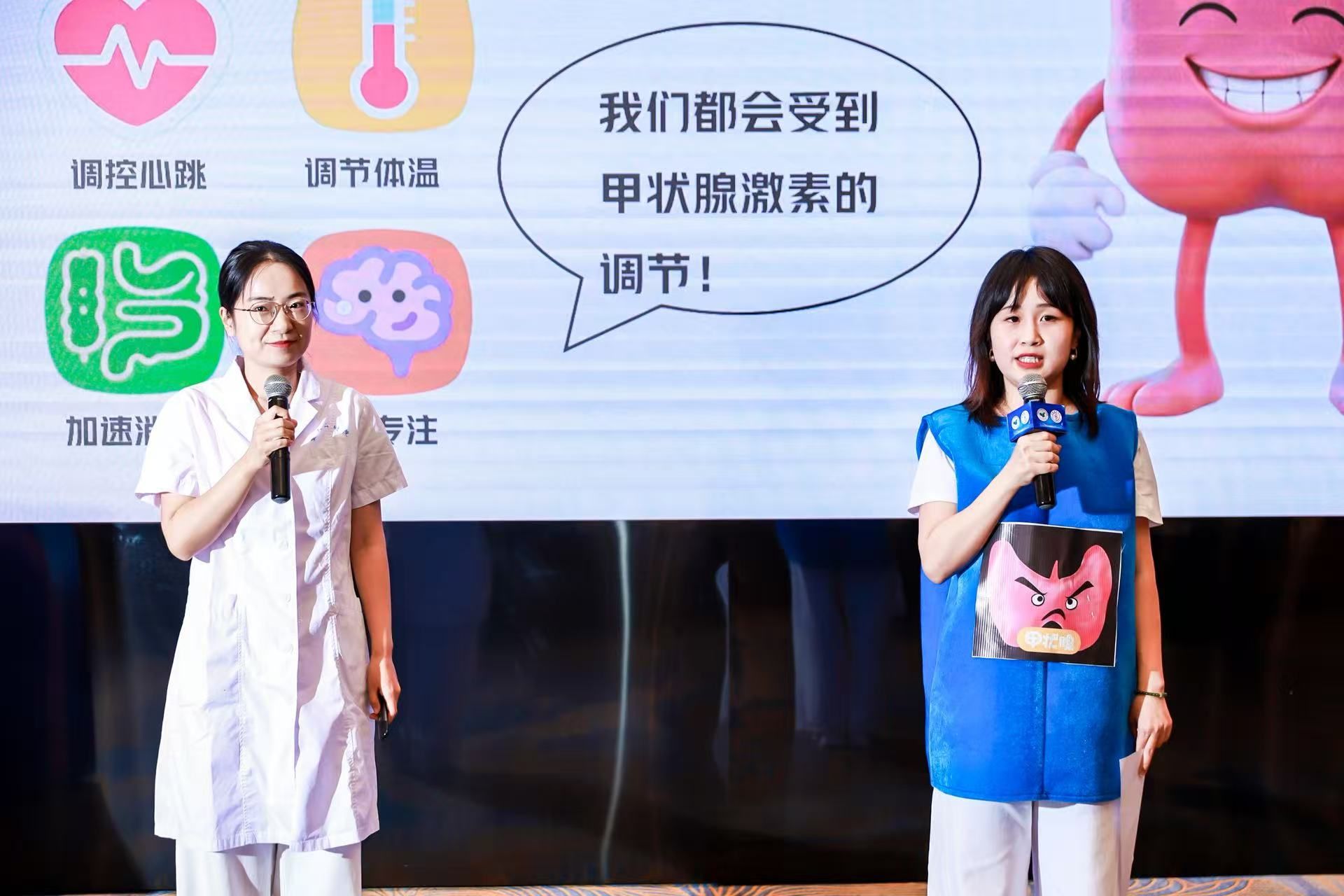 在科普演讲分会场中,我院超声医学科青年医师精心设计的两项科普作品获选参展。李诗骜医师与陆鑫医师联合演绎原创科普短剧《小甲的“罢工”风波》,以轻松幽默的方式讲解了甲状腺疾病的相关知识。井佳瑜医师则以《乳腺的青春叛逆期,不喂奶也能闹脾气》为题,生动讲述了非哺乳期乳腺炎这一常见疾病,将复杂的专业术语转化为通俗易懂的生活语言。两部作品均以创新的表现形式和扎实的专业内涵,赢得了现场观众的热烈掌声,充分展现了我院青年医师在健康科普传播方面的创意与实力。