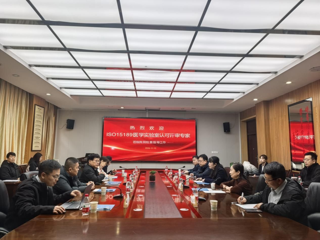 2026 年 3 月 13 日至 15 日,中国合格评定国家认可委员会(CNAS)ISO15189 医学实验室认可评审专家组莅临我院,开展为期三天的现场复评审及换证评审,我院医学检验科凭借规范的质量管理体系与过硬的技术能力顺利通过,工作成效获专家组一致认可。