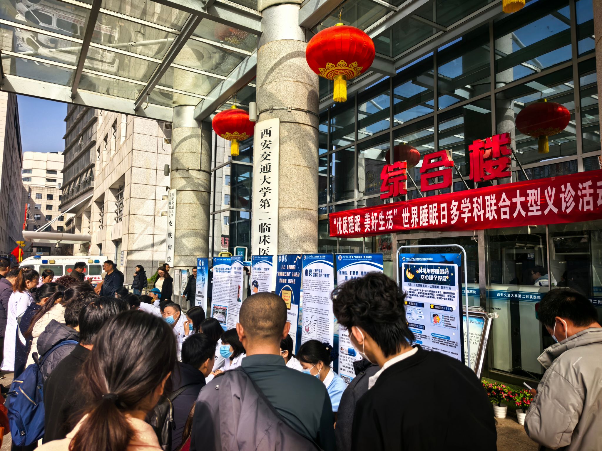 作为系列活动的核心主场,西安交通大学第二附属医院于3月20日在北大街院区成功举办了一场阵容强大的多学科联合大型义诊。医院集结了包括耳鼻咽喉头颈外科、精神心理科、神经内科、老年心血管内科、小儿内科、减重外科及口腔科在内的七大科室专家团队。活动围绕市民普遍存在的失眠焦虑、打鼾(睡眠呼吸暂停)、儿童睡眠障碍、不宁腿综合征及与睡眠相关的高血压、肥胖、口呼吸等问题,提供“一站式”的精准评估和个性化诊疗建议。通过在门诊楼举办的科普讲座,纠正了“打呼噜是睡得香”的常见误区,并现场提供了睡眠呼吸障碍量表筛查评估。为切实解决患者实际困难,活动特别为符合条件的重度鼾症患者提供了5个免费的多导睡眠监测名额,以“金标准”助力精准诊断。义诊现场气氛热烈,专家耐心细致的解答获得市民一致好评。