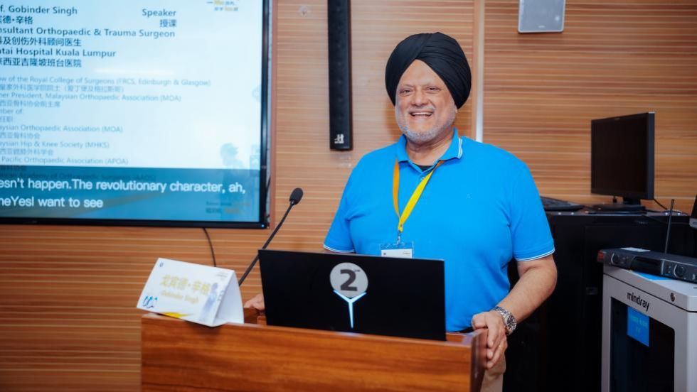 马来西亚骨科协会前主席戈宾德·辛格教授在致辞中表示,非常荣幸受邀参加此次参访班。他高度评价了西安交通大学第二附属医院关节与足踝外科在数字化骨科领域取得的成就,并指出Mako智慧机器人技术代表了关节置换手术的精准化未来。他期待通过亚太参访班这一平台,进一步加强区域间的学术交流与技术协作,共同推动智慧骨科技术的规范化应用与长远发展。