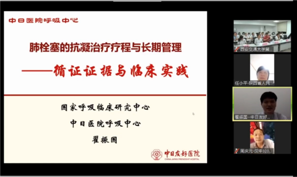 肺血管疾病专场,中华医学会呼吸病学分会肺栓塞学组副组长、中日友好医院翟振国教授从循证医学证据及临床实践出发,深入讲述了肺栓塞抗凝治疗疗程及长期管理策略;中华医学会心血管分会肺血管病学组副组长、西安交通大学第一附属医院周围血管科主任田红燕教授就慢性血栓栓塞性肺动脉高压的药物、介入及外科手术治疗进行了详尽介绍;中华医学会呼吸病学分会肺栓塞学组委员、首都医科大学朝阳医院杨媛华教授从VTE风险评估方法、预防措施及治疗进展方面进行了精彩报告;我院呼吸与危重症医学科杨侠教授系统性地阐述了D-二聚体在VTE诊治中应用;王蕾医生则向大家展示了一例SLE相关性肺动脉高压病例,引发了线上专家的精彩互动。