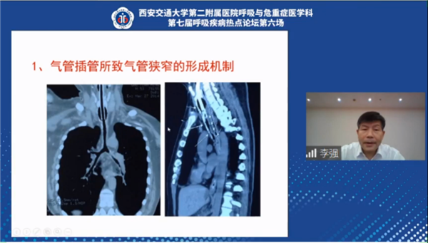 介入治疗专场,中华医学会呼吸病学分会委员、同济大学附属东方医院李强教授针对不同程度的近声门气道狭窄,向大家讲述了其介入治疗策略;中华医学会呼吸病学分会委员、空军军医大学唐都医院金发光教授从气道狭窄的原因、分类、分级、分期及不同情况下的处理方式进行了精彩讲授;世界内镜医师协会呼吸内镜副会长、天津医科大学总医院冯靖教授则别开生面、生动形象地讲解了关于免疫缺陷患者霉菌病灶及伴随细菌感染的ROSE同步化单次介入减局的操作流程,并展示了实例分析;我院呼吸与危重症医学科张德信教授结合指南共识及自身丰富的介入治疗经验系统性地介绍了肺癌小样本的介入取材技术;李维副主任医师则分享了两例气道狭窄并成功进行介入治疗的病例,讨论专家们就此发表了各自的独到见解。