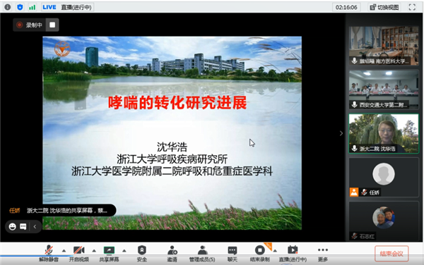8月19日晚举行了第一个专场——慢性气道疾病专场,浙江大学医学院副院长、中华医学会呼吸病学分会副主任委员、浙江大学第二附属医院沈华浩教授讲授了哮喘的转化治疗;中华医学会呼吸病学分会常委、复旦大学附属中山医院宋元林教授就慢阻肺领域最新进展对大家提供了实用性的指导;中华医学会呼吸病学分会委员兼哮喘学组成员、南方医科大学南方医院蔡绍曦教授讲解了重症哮喘的诊断与管理;我院呼吸与危重症医学科张洁副主任、刘昀副主任则分别就慢阻肺治疗ICS的撤退策略、过敏性疾病特异性免疫治疗的新进展做出了精彩报告。