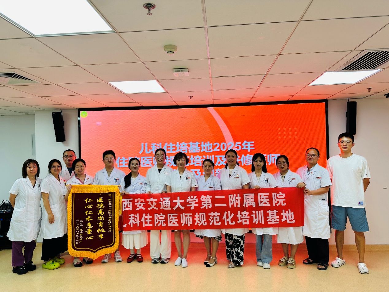 2025 年 8 月 21 日下午四点,儿科教研室会议室内,暖黄色的灯光映着墙上 “守护童心” 的标语,一场兼具不舍与喜悦的特殊仪式在此温馨开启。此次仪式意义双重:既为四位圆满完成规培的医师、三位顺利结业的进修医生送上离别祝福,也向三位即将加入的新住培医师敞开怀抱,现场桌上摆放的鲜花与纪念册,提前氤氲出温情氛围。