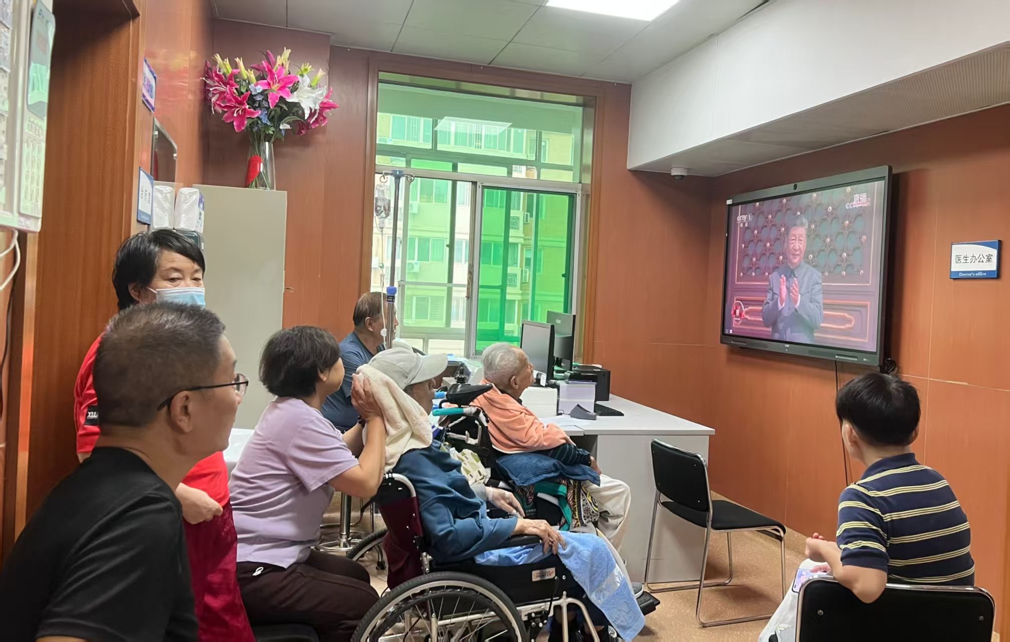 2025年9月3日上午,纪念中国人民抗日战争暨世界反法西斯战争胜利80周年阅兵仪式在北京天安门广场隆重举行。在这举世瞩目、举国欢庆的历史性时刻,我院老年综合内科党支部精心组织,在确保医疗护理工作正常有序进行的同时,利用护办智慧大屏,设立了集中观看点。医护人员工作间隙、部分住院患者及家属陪护人员齐聚一堂,共同收看了阅兵盛况的现场直播,一起见证了这一承载着光荣与梦想、彰显国威军威的伟大时刻。