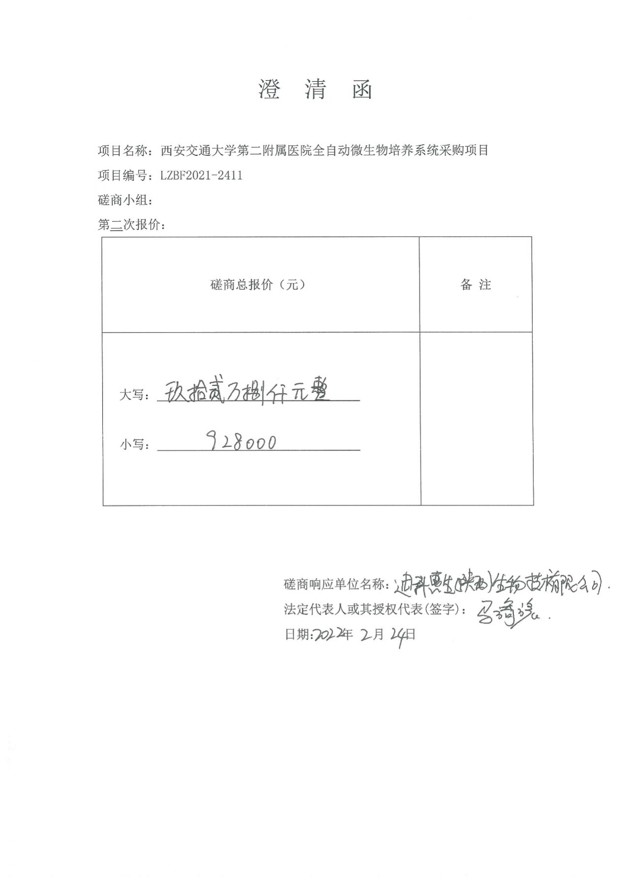 二、项目名称:西安交通大学第二附属医院全自动微生物培养系统采购项目