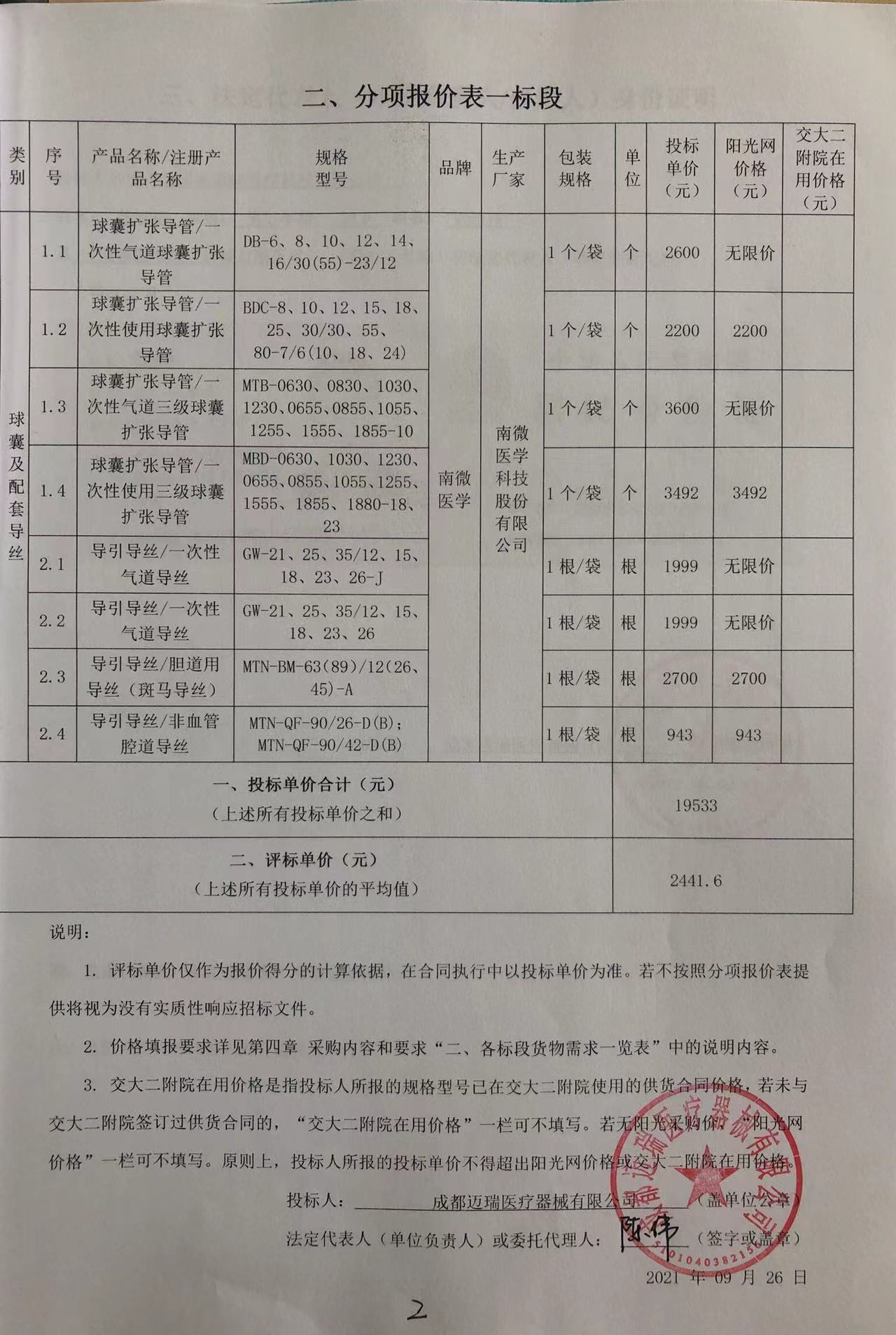 1 | (1标段)成都迈瑞医疗器械有限公司 | 详见澄清函 | 南微医学 | 详见澄清函 | 详见澄清函 | 详见澄清函 |