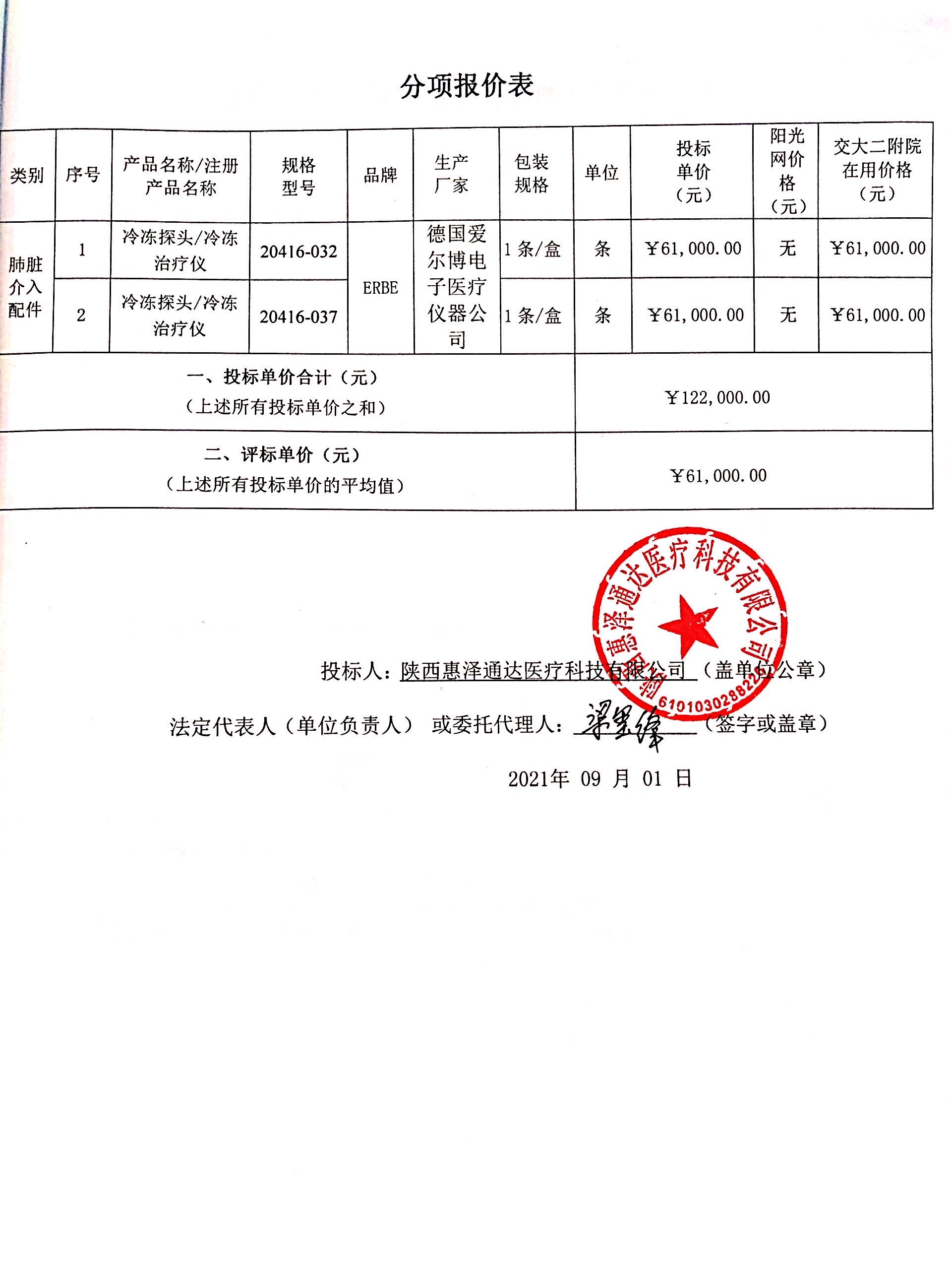 6 | (9标段)陕西惠泽通达医疗科技有限公司 | 详见澄清函 | ERBE | 详见澄清函 | 详见澄清函 | 详见澄清函 | |