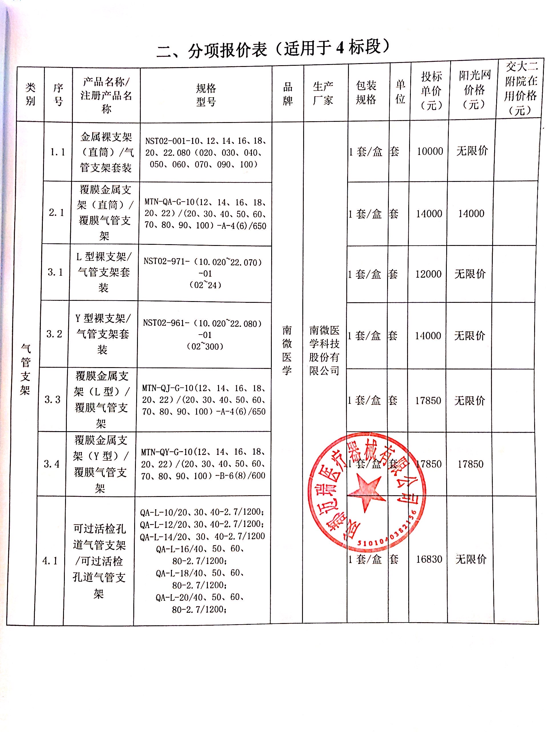 2 | (4标段)成都迈瑞医疗器械有限公司 | 详见澄清函 | 南微医学 | 详见澄清函 | 详见澄清函 | 详见澄清函 | |