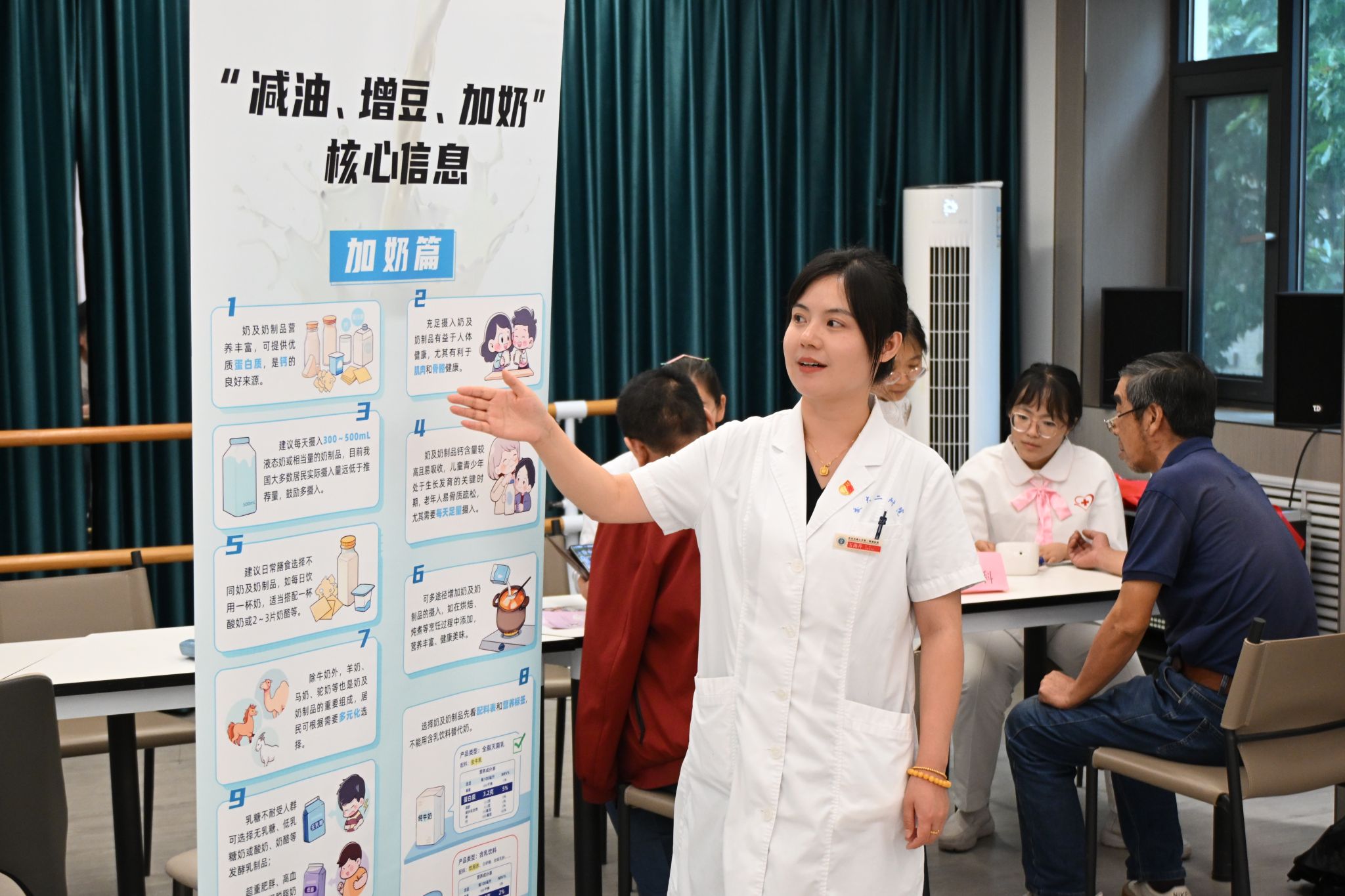 作为本次活动的积极参与者和组织者之一,临床营养科党支部的同志们发挥了先锋模范作用。面对居民们提出的一个个与日常生活息息相关的营养问题,支部党员们从专业角度出发,结合个体情况,提供了个性化的饮食指导方案。不仅为多位居民朋友纠正了许多常见的饮食误区,还发放了科普手册与限盐勺,将“合理膳食、均衡营养”的科学理念深植于居民心中,以实际行动将党建成果转化为服务群众的强大动力。